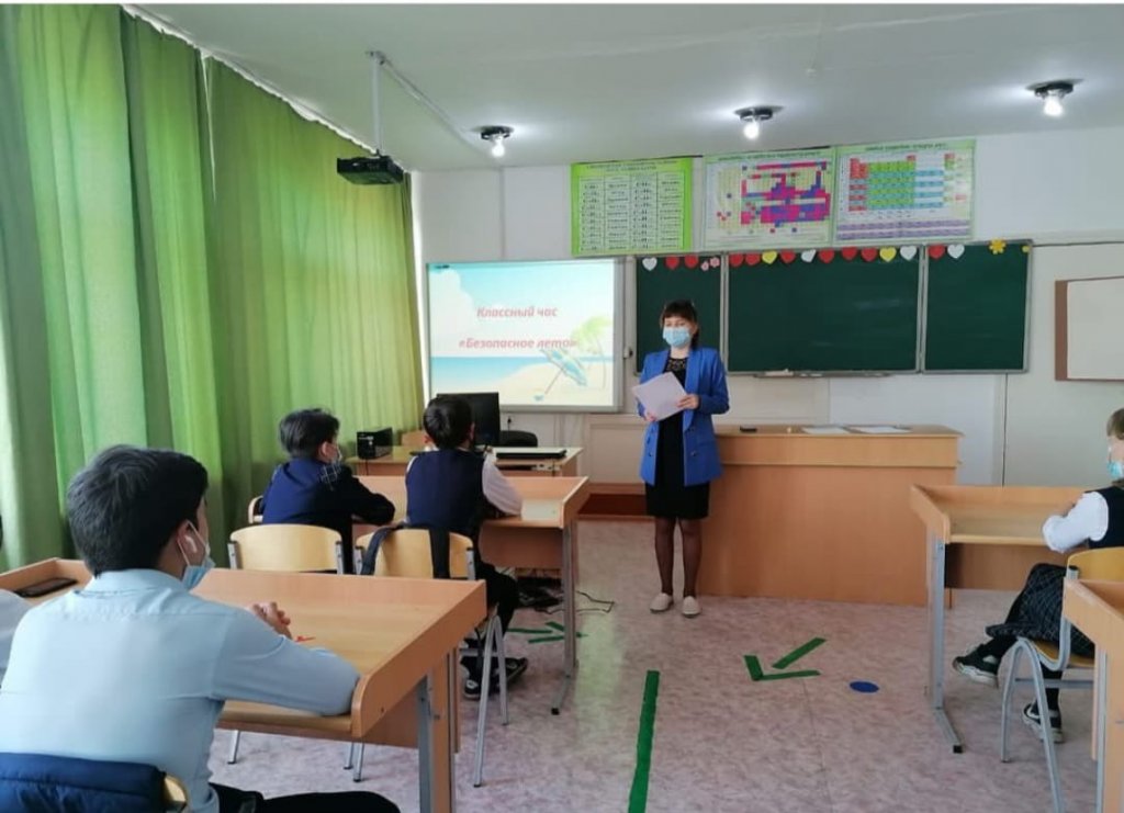 Балалардың жазғы демалыстағы қауіпсіздігі үшін сынып жетекшілері «Қауіпсіз жаз» тақырыбында 1-11 сыныптарда сынып сағаттарын өткізді, оған шомылу маусымы кезінде балалардың судағы қауіпсіздігі тақырыбы да енгізілді.