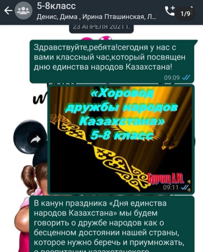 5-11 сыныптарда сынып жетекшілері «Достық шаңырағы астында, Қазақстан халықтары өмір сүреді» атты қашықтықтан сынып сағаттарын өткізді.