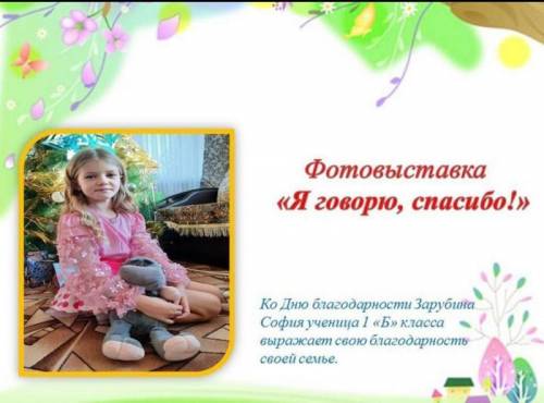 Алғыс айту күні 1 «Б» сынып оқушысы София Зарубина өзінің отбасына ризашылығын білдіреді.