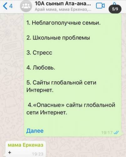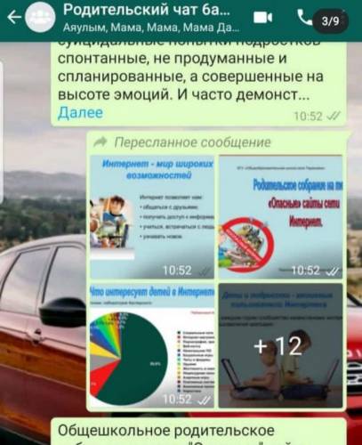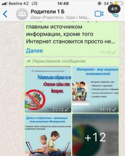 7 сәуірде «Қауіпті» интернет-сайттар тақырыбында ата-аналар жиналысы қашықтан форматта өтті. Жиналысқа 38 ата-ана қатысты. Жиналыстың мақсаты: ата-аналардың «қауіпті» интернет-сайттардың зияны туралы білімдерін кеңейту. Ата-аналарға интернеттің балаға кері әсері туралы ақпарат берілді. Интернеттегі балаларды не қызықтыратыны, балалар қай сайттарға кіретіні туралы статистикалық мәліметтер келтірілді.Біз ата-аналарға «қауіпті сайттардың» балаларға тигізетін зияны туралы: порнография, жастардың депрессиялық қозғалыстары, педофилия, жеке ақпаратты жария ету, есірткі және психотроптық заттарды насихаттау, кибербулинг, құмар ойындарға тәуелділік және суицидтік үгіт-насихаттарды ұсындық.Интернеттегі суицидтік үгіт-насихаттың балалардың психикасына қауіпті әсеріне ерекше назар аударылды. Кездесу барысында біз ата-аналардың әлеуметтік желілердің, яғни жасөспірімдерді суицидке итермелейтін ойындардың, топтардың зияны туралы білімдерін кеңейттік, сонымен қатар зиянды салдардан аулақ болуға көмектесетін пайдалы кеңестер бердік. Ата-аналарға үйдегі интернет-бұқаралық ақпарат құралдарында (планшеттер, ұялы телефондар, компьютерлер) «ата-ана бақылауы» функциясын қосу қажеттілігі туралы хабарланды.Ата-аналар жиналысының талқыланған тақырыбын ата-аналар оң қабылдады, ата-аналар ата-аналар үшін де, балалар үшін де пайдалы ақпарат үшін алғысын білдірді. Осы кезде балалар Интернетке байланған кезде өте пайдалы осындай мәселелерді көтергеніңіз үшін рахмет.