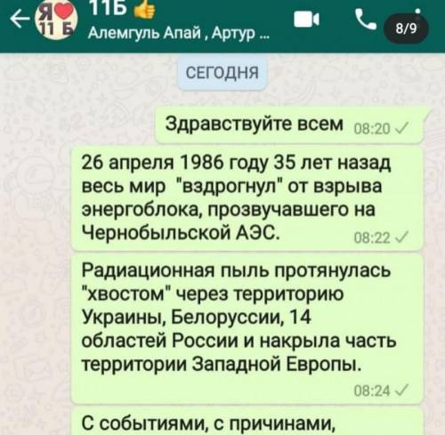 26 сәуірде 1-11 сыныптарда Чернобыль атом электр станциясындағы ядролық апаттың 35 жылдығына орай «Чернобыль - жалпы азап пен қасірет» атты бірыңғай сынып сағаты өтті. Чернобыль деген қорқынышты сөз бүкіл әлемде естіліп, әлемге 20 ғасырдағы ең үлкен апат - көптеген адамдардың өмірін қиған Чернобыль атом электр станциясының 4-энергоблогындағы жарылыс туралы жариялады. Бұл күні көптеген адамдар атом тек бейбіт бола алмайтынын түсінді.Өздерін құрбан етіп, мыңдаған отандастарымыз Чернобыль апатын жоюға қатысты, оның салдары бұрынғы Кеңес Одағының ғана емес, басқа Еуропа елдерінің тұрғындарына да қауіп төндірді. Жерлестер - Жақсынцы да шет қалмады. Олардың арасында біздің жерлестеріміз Владимир Владимирович Рычков пен Александр Сергеевич Пигин бар. Трагедия туралы естелік біздің халқымыздың жанындағы жазылмаған жара болып қалады. Чернобыль апатын жоюшылардың жасаған ерлігі ешқашан ұмытылмайды. Күн сайын бұл кейіпкерлер азайып бара жатқанын түсіну ащы. Олардың ерлігі туралы бәріміз есте сақтауымыз керек.