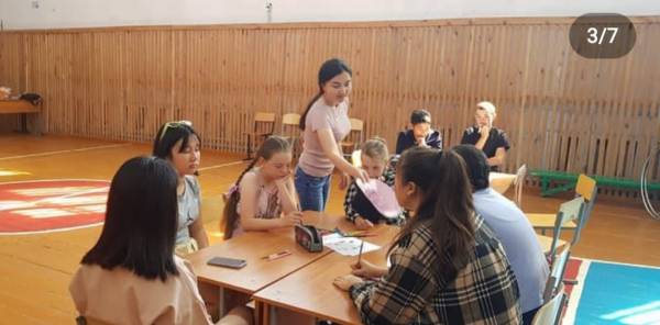 17.06. «Солнышко» мектеп жанындағы лагердің үшінші күні екінші ауысым. Бүгінгі тақырып «Денсаулық және спорт күні». Сабақ қызықты физикалық минуттан басталды. Жігіттер «Жол ережесін білгірлер» викторинасында білімдерін қайталап, бекітті, викторинадан кейін «Менің отбасым» тақырыбында әңгімелесіп, «Менің сүйікті кейіпкерім» суретін салды.